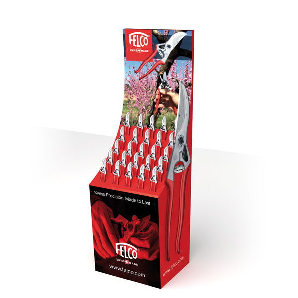Qui dit luxe, dit haut de gamme. Nous sublimons votre marque en concevant vos plv de luxe. Nous travaillons avec de grands acteurs du luxe dont la marque suisse Felco qui souhaitait une plv luxe pour la promotion de ses sécateurs. Felco offre des solutions innovantes et durables, pour les secteurs de la taille et de la coupe en proposant des outils de qualité aux particuliers comme aux professionnels. Une plv d’exception pour refléter ses valeurs d’excellence et les codes marketing du luxe.